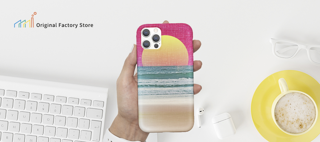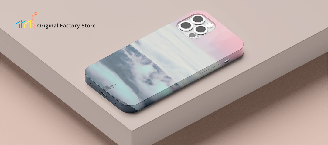 A snowy mountain wrapped in a warm image of orange is made into a smartphone case. Even the sides are printed. Available for all iPhone models.